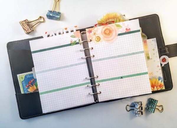 Here is a couple of the pages cut, and punched inside the Foxy Fix Personal Wide Rings. I think it is a great option if you love your personal rings and want a wider option!