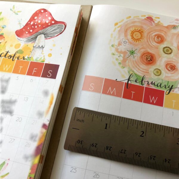 The B6 is a great size. It is comparable in height to the personal, but wider to give you more room to spread your wings and let your create juices flow, or give you more room to add more lists or journaling, or whatever you want to do in your dori. As with any of the Cocoa Daisy Dori’s they are filled with beautiful art making it easy for you to be functional and pretty with little effort. And leaving room for you to add your stamp on things should you choose to!