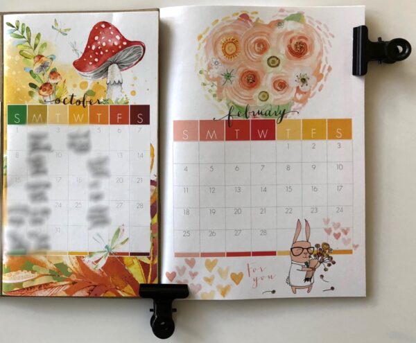 Here is a side by side comparison of the personal size and B6 calendar showing the size difference of the calendar boxes. I love the extra width there is in the B6 Calendar boxes!