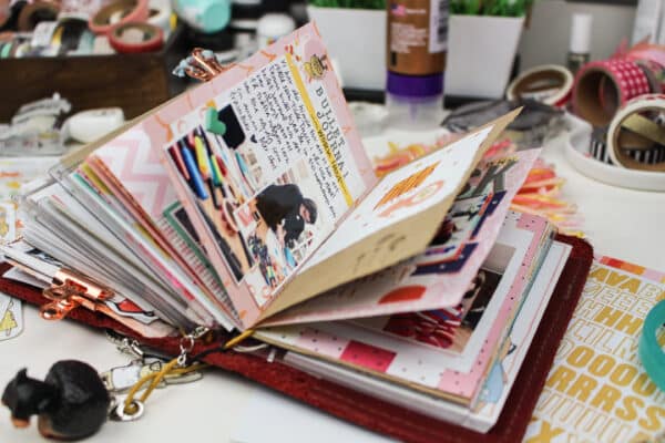Hello darling daisies! Today I wanted to share with you a bit of my latest project. After falling in love with memory keeping in my minidori during December (you can see a little flip of that insert HERE and HERE) I decided  to try and make a little booklet with the papers from the memory keeping 12×12 kit. It’s a fairly quick and simple DIY and I have a VIDEO up on my YouTube channel if you are interested to see the process. What excites me a bit extra about this way of memory keeping, other than the fact that it is darn cute and fun to work with, is that it is perfect to use bits and pieces from the planner kits in there.