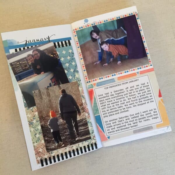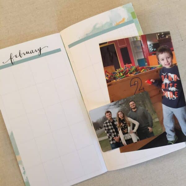 I have a few pictures printed for February and just slipped into the booklet. When the month is over, I’ll print any other favorite memory pictures and complete my pages for the month.