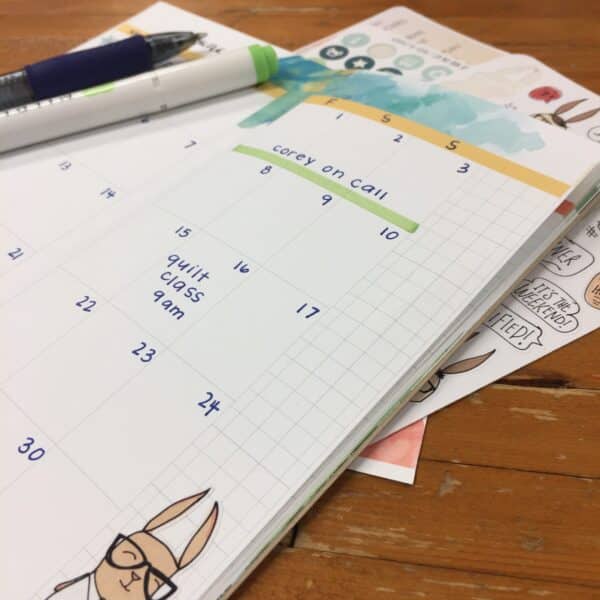 I chose to use the personal size dori for my forward planning! I primarily use a personal size ring bound planner and I love that I can slip it in to the front pocket of my planner. It doesn’t take up room in my rings AND when I need to schedule a doctor appointment I can bring just the dori in to the office with me. It’s such a portable size. I use just a mildliner and a pen to get appointments down and then use scraps from my kits to add some jazz….. (SIMON!)