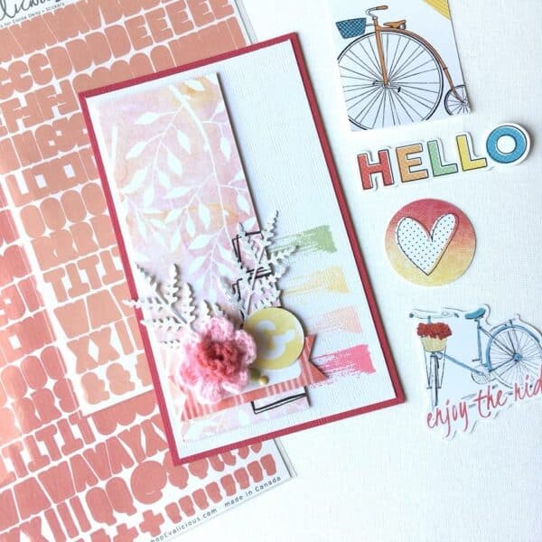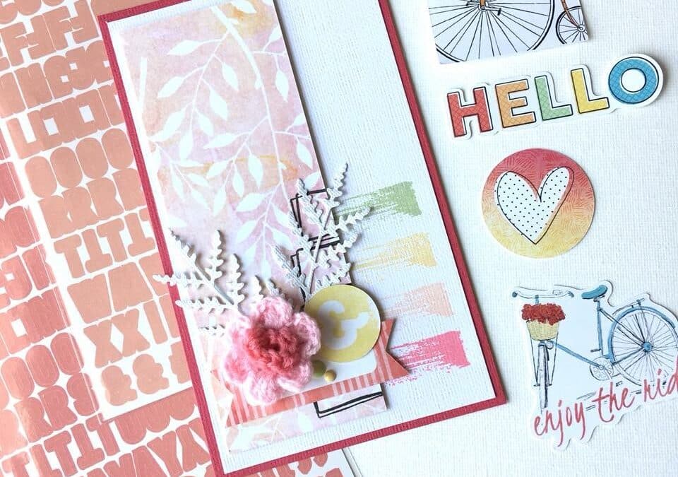 Estelle made this gorgeous card featuring one of the crochet flowers from the kits. Who wouldn’t want to open up an envelope and see this beauty of a card? Right?