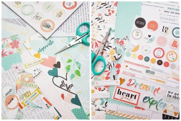 Because I’m so in love with the colors of April kits, I simply picked some papers and embellishments based on it.