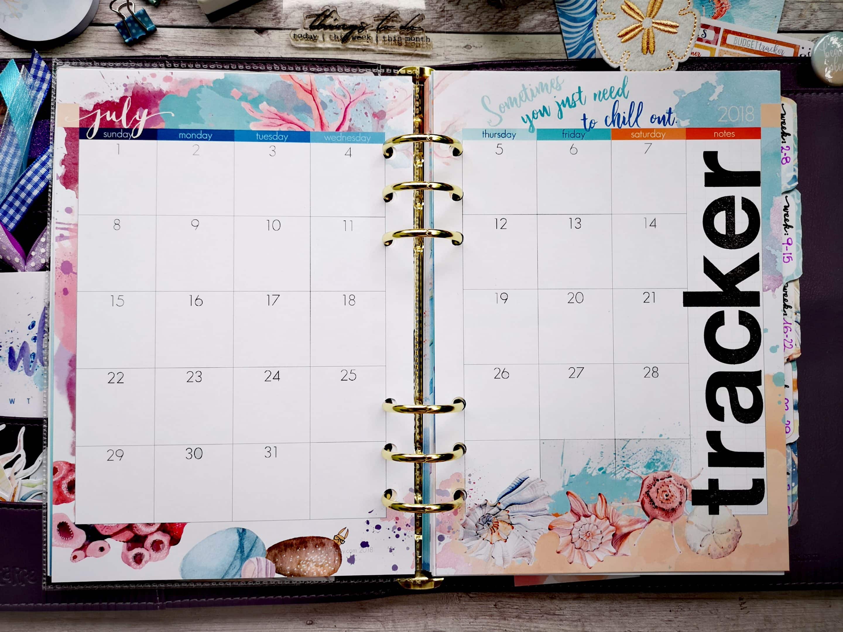 In the monthly view for this month a tracker (for this month I decided to monitor the time with the help of my Simon stamps 🙂
