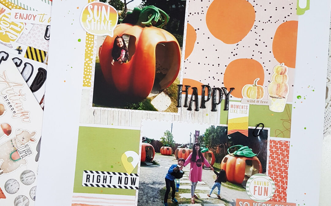 I really love the color combo of the new September Memory Keeping kit, green, yellow, and orange.