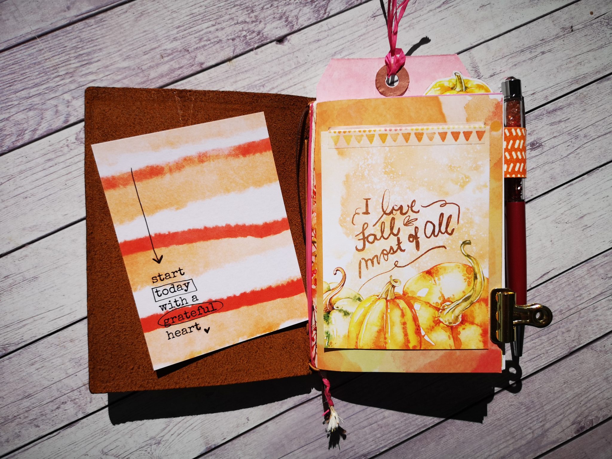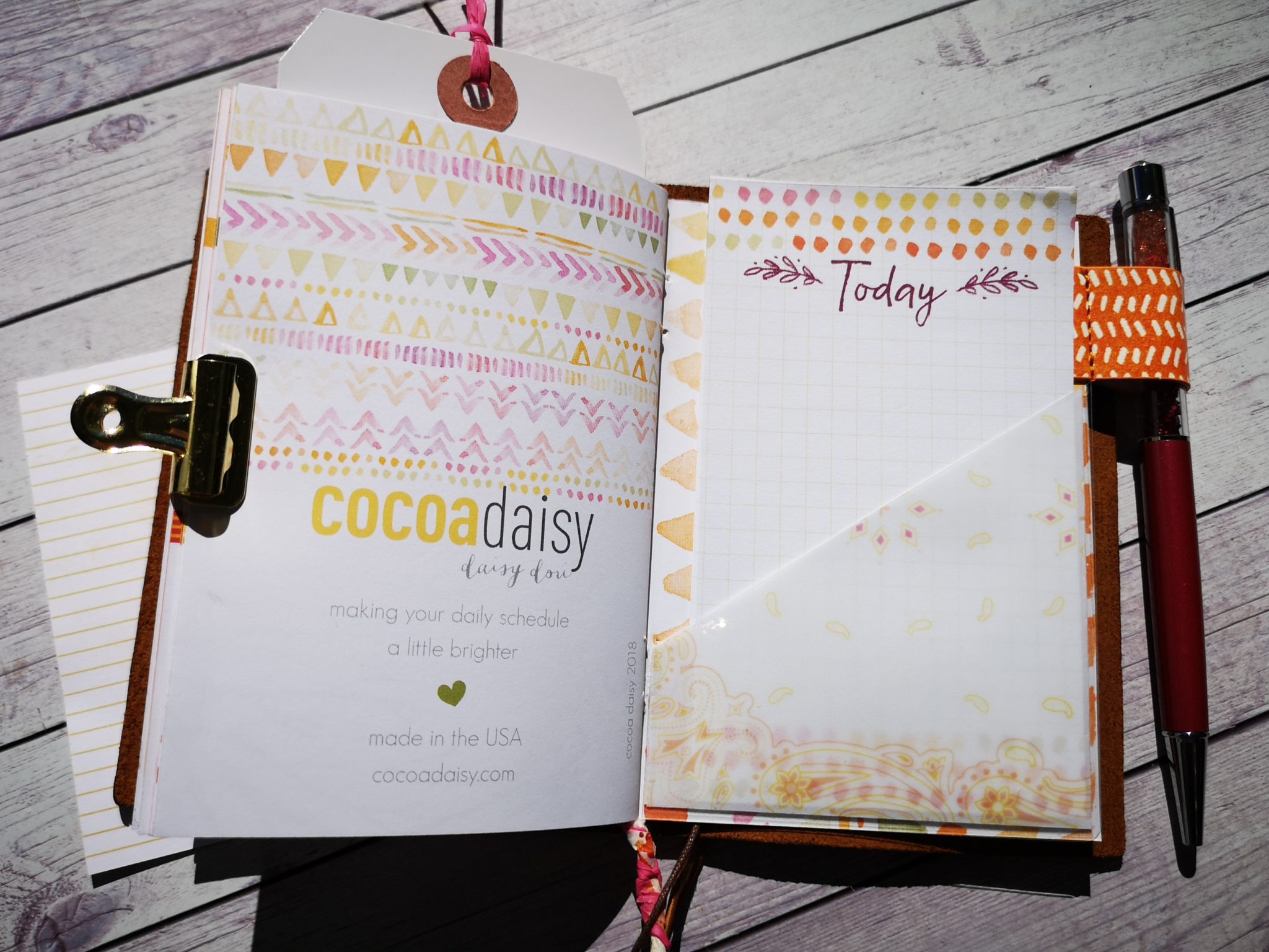 I attached the pen loop to the back cover and add my beautiful pengem.