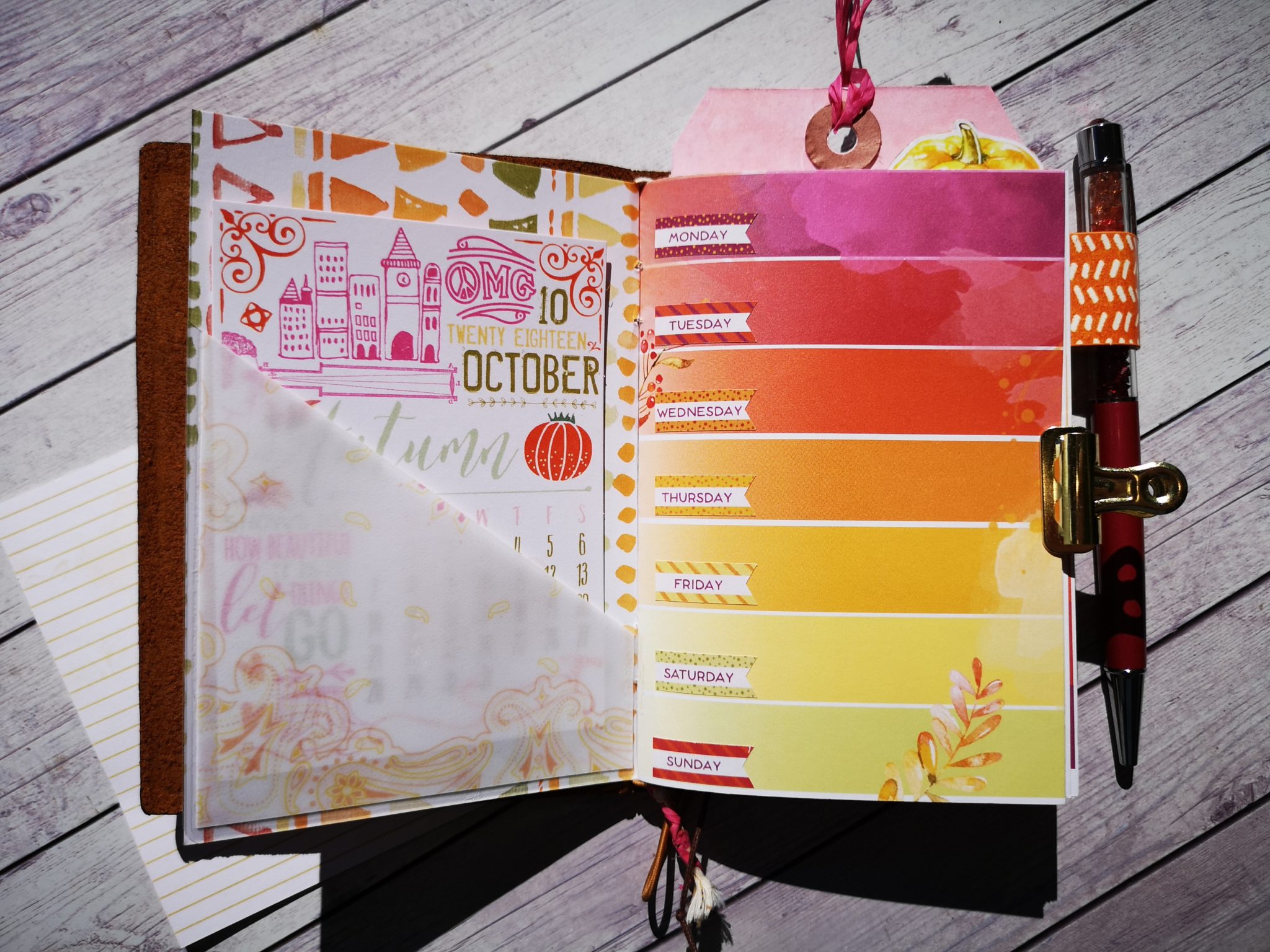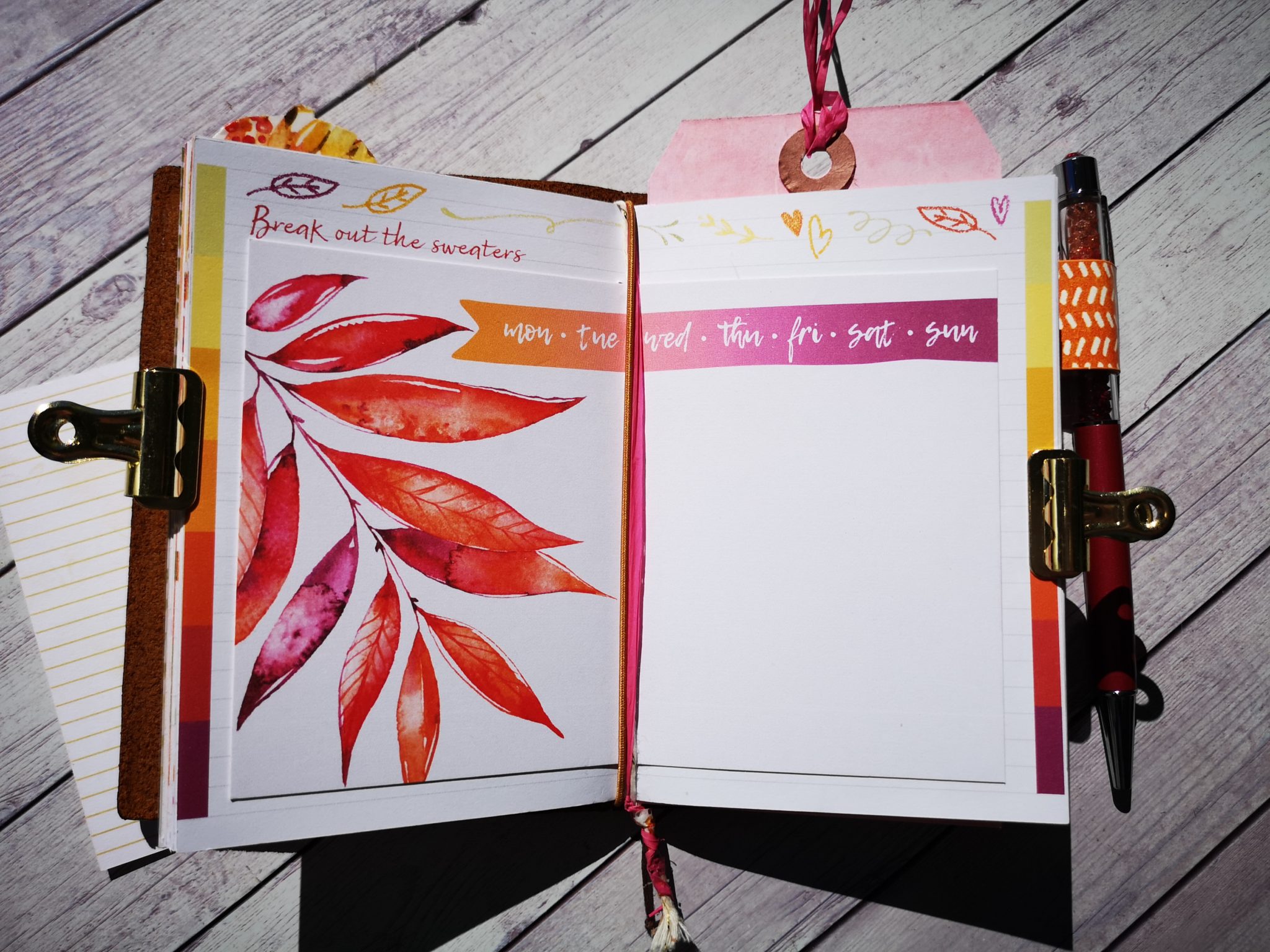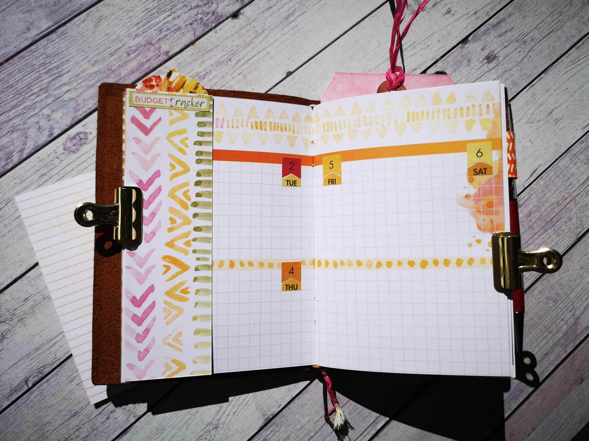 For the layout I decided to insert 2 days for space for a total of 6 days on page plus a free space for notes.