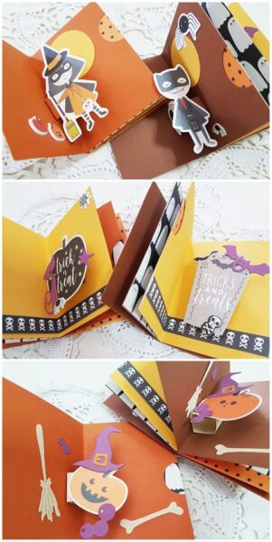 I have been thinking to make pop-up books for my nephew and niece for a while, and here they are!! I love these Halloween die-cuts from @cocoa_daisy classified kit. I also used some dies from @sizzix_lifestyle and the witch’s hat is my favorite!!