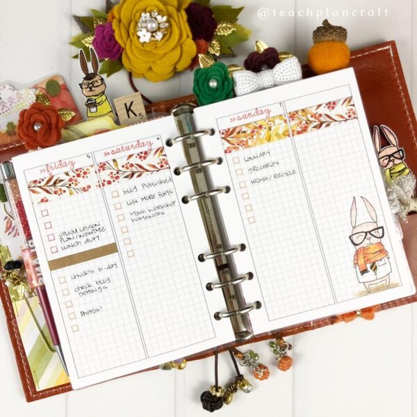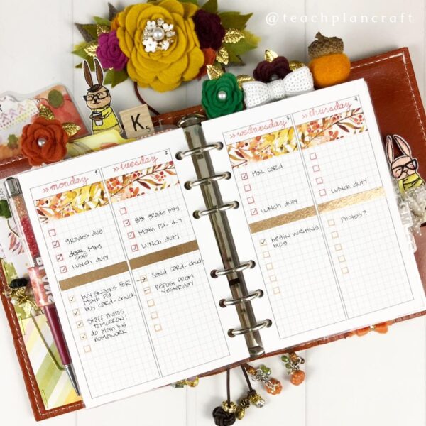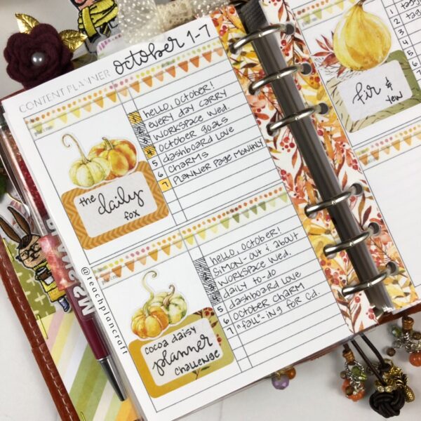 As a busy teacher with way more items on my to-do list than working hours, a planner is essential! I have run the gamut from pre-printed spiral planners to bullet journals to travelers notebooks to ring binders, and once i gave up the idea of “planner peace,” I started to enjoy trying new sizes and formats. Constantly switching it up keeps my creative juices flowing! Right now, I am in Foxy Fix A6 rings and absolutely LOVING them. Let’s take a look at my setup!