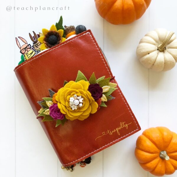 For October, I’m using A6 rings in the Spice Saffron leather. It’s a beautiful rusty red color and complements the October Cocoa Daisy kits so well!