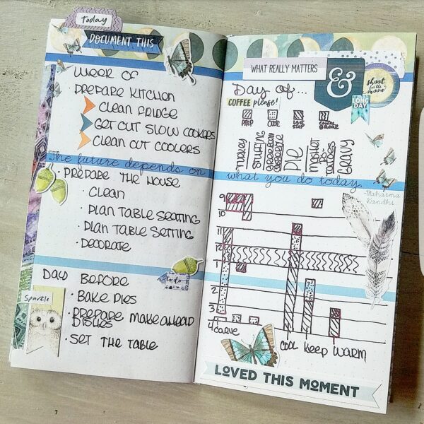 I decorated a few more pages in the back to document the day, how it went. what worked, didn’t work, could be better and so forth. I left plenty of room!!