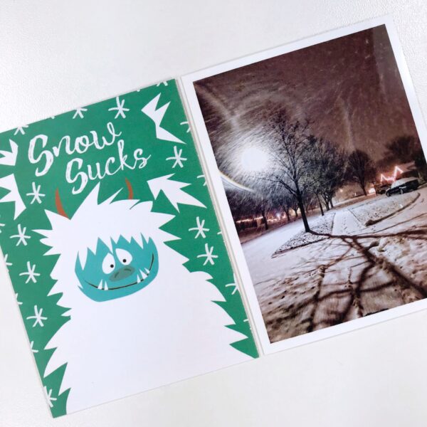 I couldn’t decide which side of the Abominable Snowman to use and finally decided that last year, this was definitely how I felt about snow!