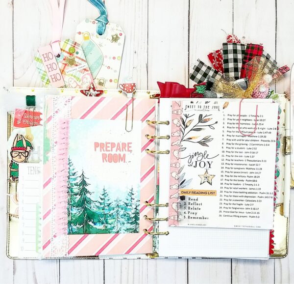 I am doing the Jingle and Joy Daily praying/reading this year. I found this free print out on their website: SWEETTOTHESOUL.COM. I laminated it and clipped it in rather than punched it to fit as an insert. That may have been a mistake. we shall see!!