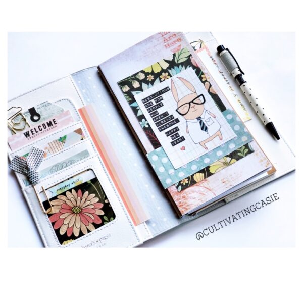 Another crafty goal this year is to document my faith journey using Cocoa Daisy products.  For this month I am utilizing the standard Dori.  Next month I will use the new Memory Keeping Travelers notebook subscription so stay tuned for a blog post about that!