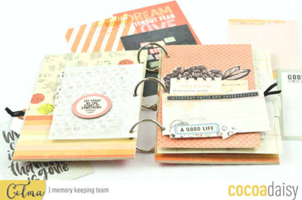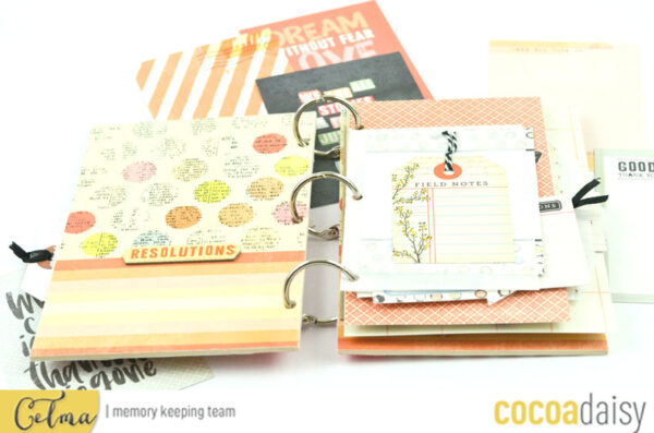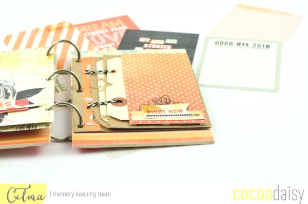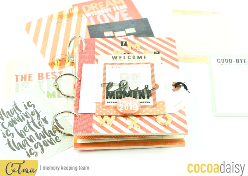 I am very happy to meet you today to show you my last mini book realized with the kits “paper and ink” of this month of December. This album and really very easy to do, I made a cardboard cover and used the rings of memory 12×12 kit for closing.