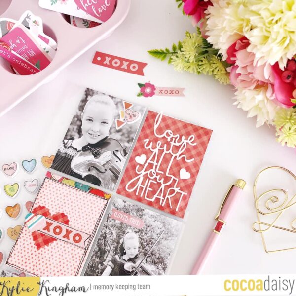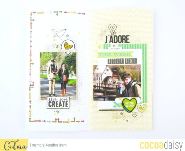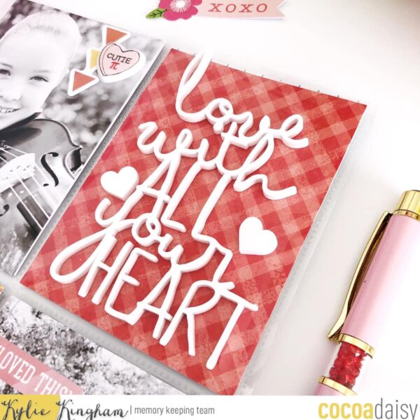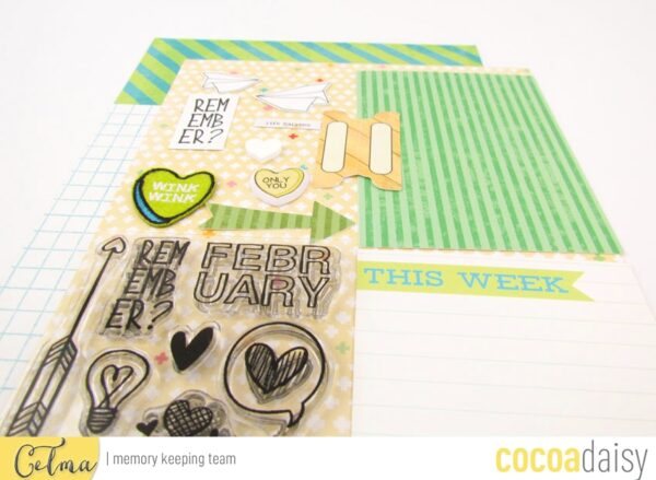 My favourite supply this month was the plastic phrase and hearts which I have used to enhance my pocket pages.