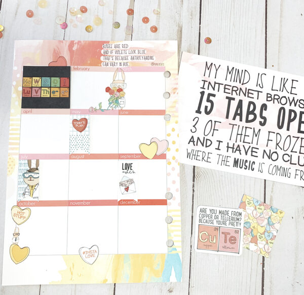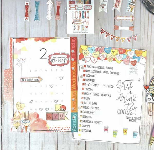 I always start with the February dashboard that comes with the kit as my cover page! You will see that this month I am focusing on minimalism. I am keeping things sweet and simple.