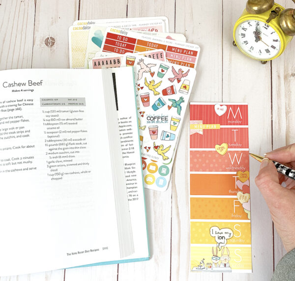 This month I used the days of the week that I cut off as my menu planning and grocery list/bookmark! I love how it turned out and may continue to cut them this way. I have more room to write things on the top week at a glance section this way.