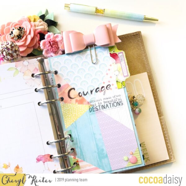 Another dashboard/divider for my travel plans and conference insert. This dashboard also has my one word for the year “courage.”