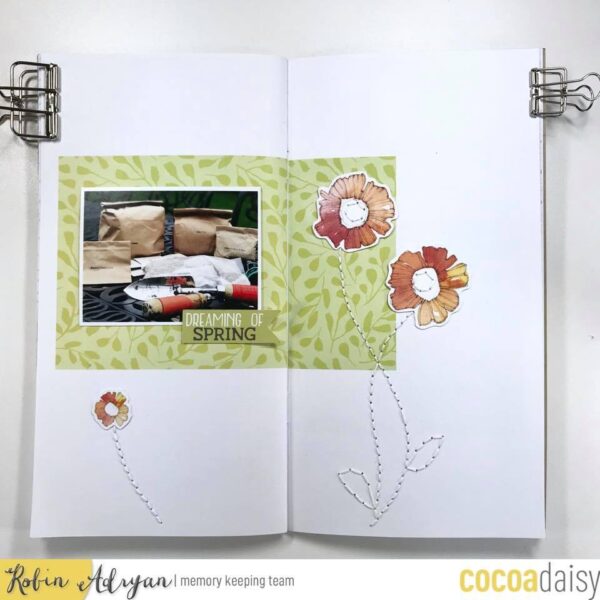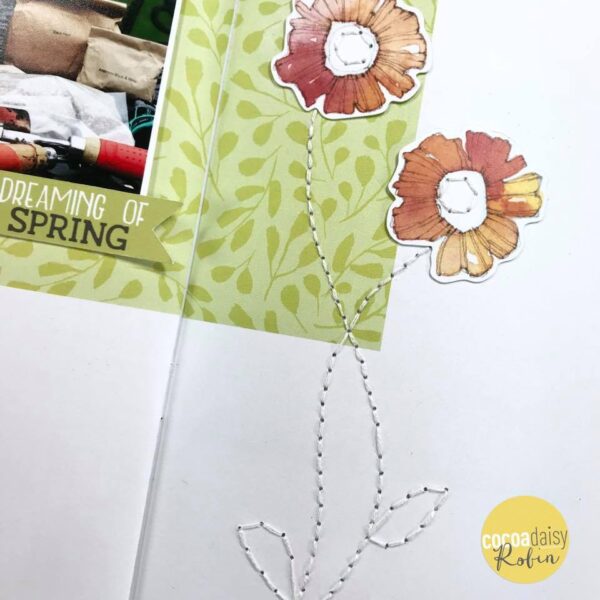 Also, the hand stitching stems are perfect with the flower ephemera.