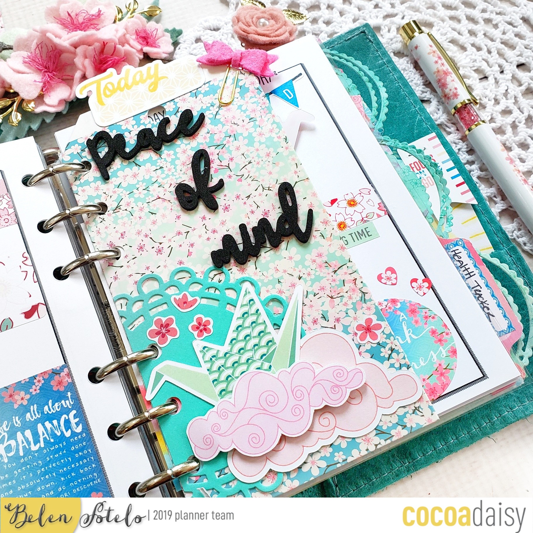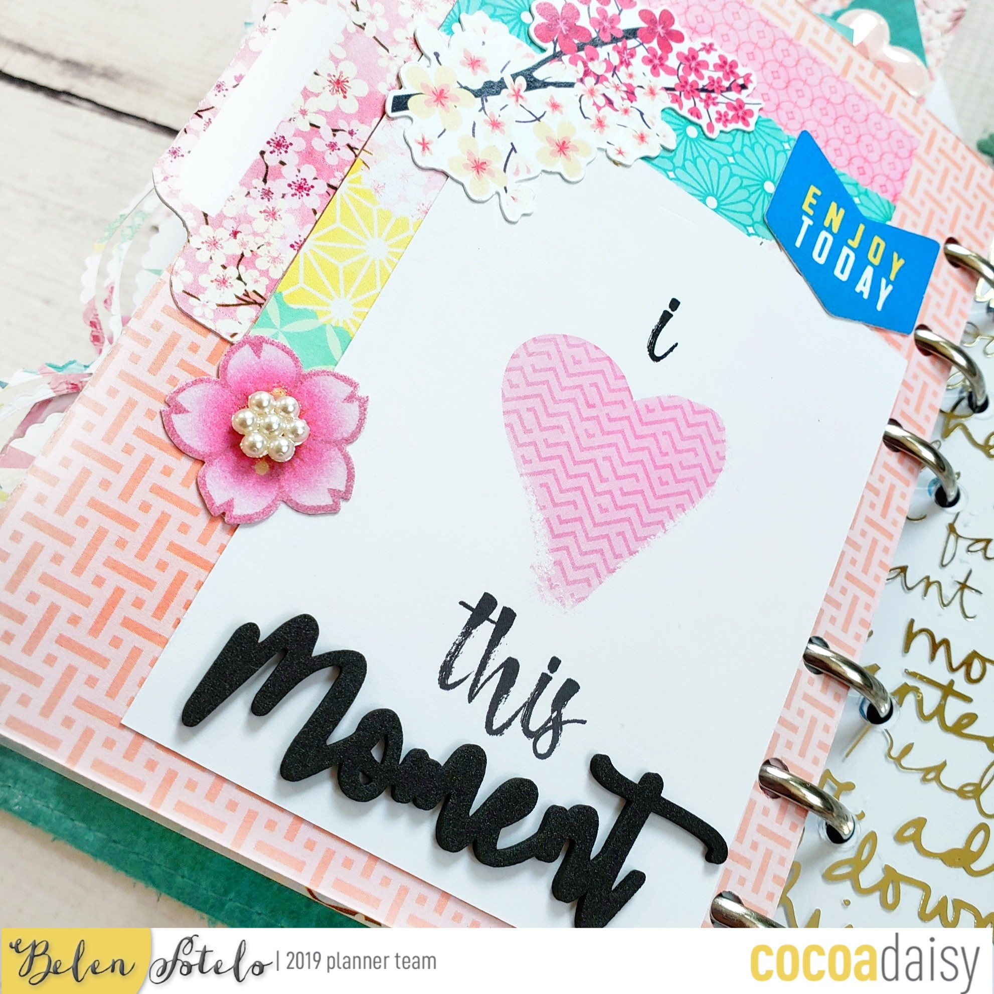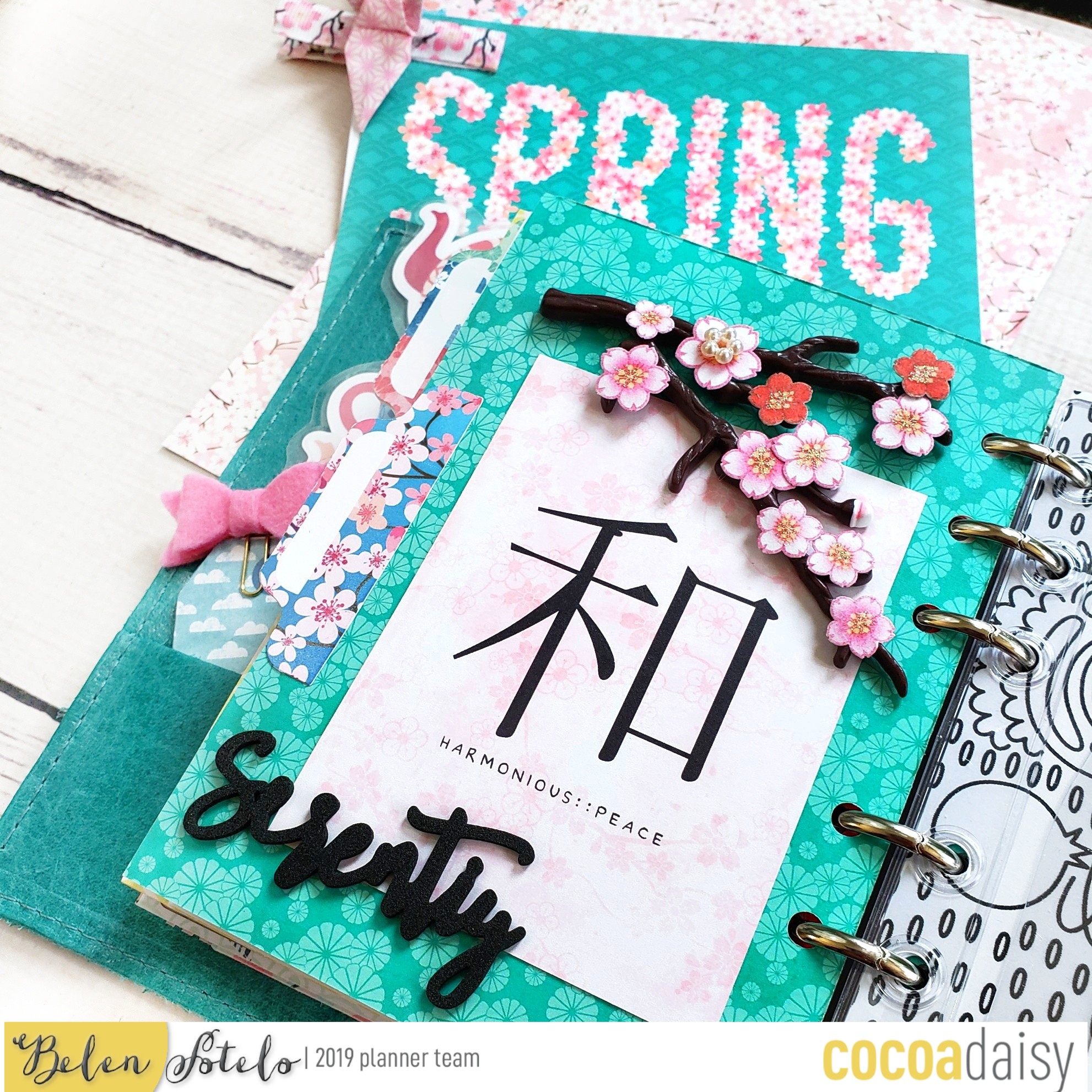 I really like this month’s 3D foam words and i used them, along with a pocket card, and some cherry blossoms from my old scrap booking stash, to decorate one of my dividers.