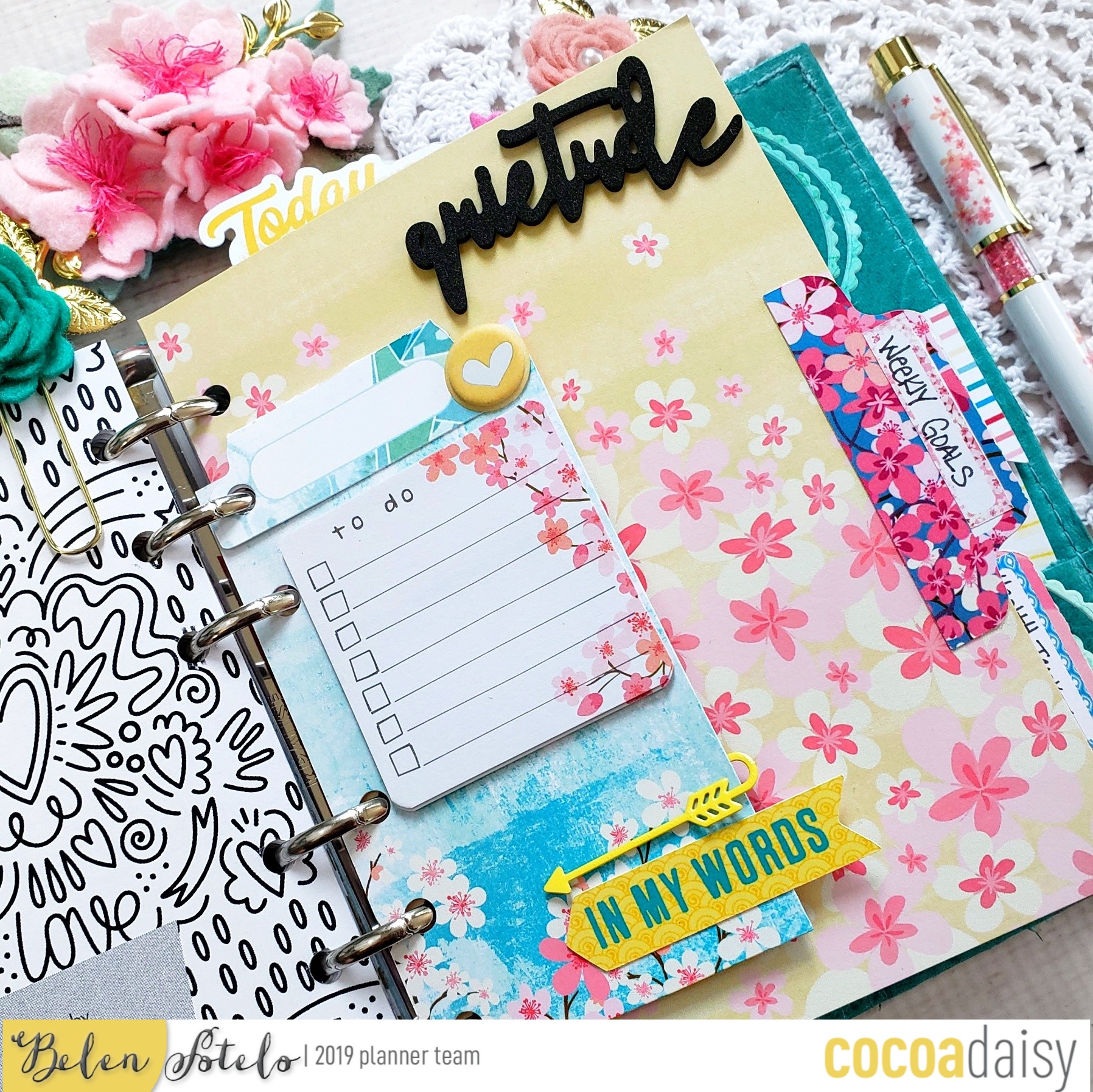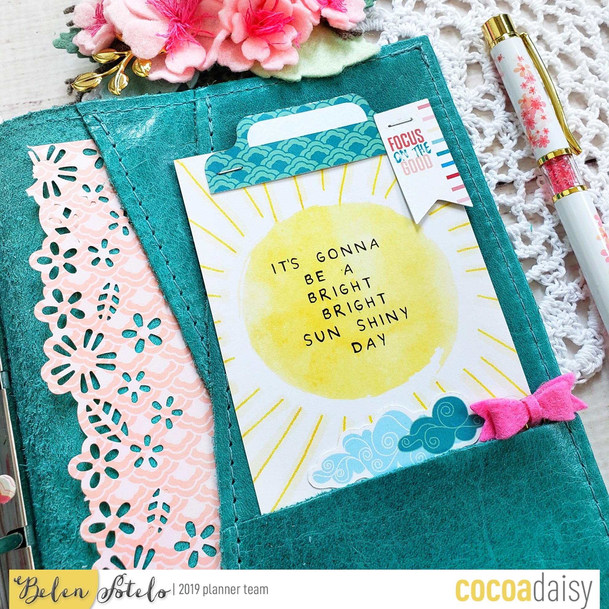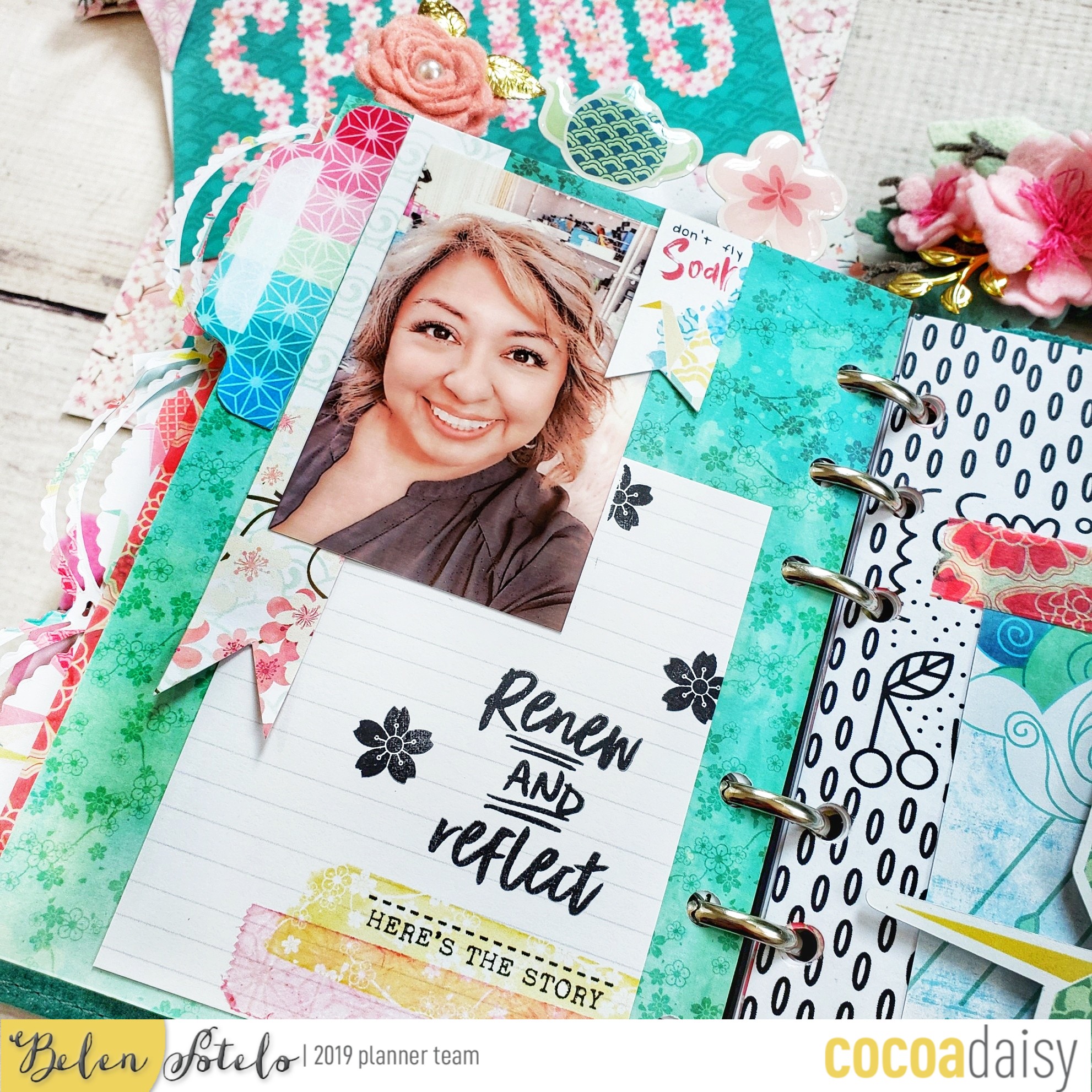 I really like this month’s 3D foam words and i used them, along with a pocket card, and some cherry blossoms from my old scrap booking stash, to decorate one of my dividers.