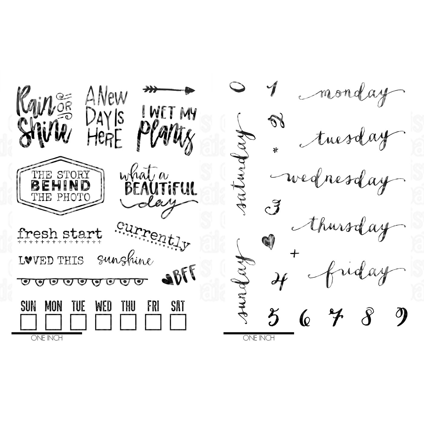 These tab stamps are a long time favourite. I have been using them for 12 months now and love the look they give my planner. They feature a border as well as various topic stamps which you can use to suit your needs. The script is beautiful and I would so love my handwriting to look like this!