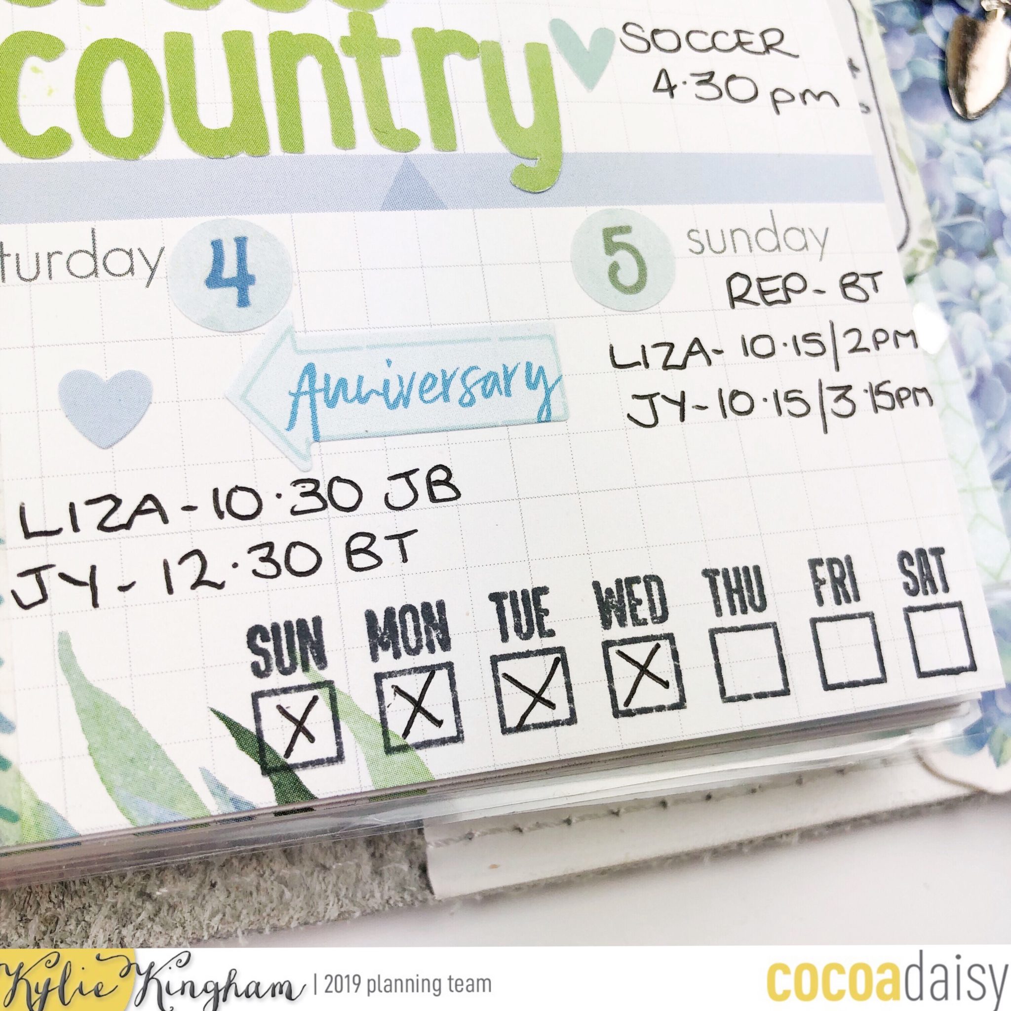 I’m throwing it back to the ‘Twinkling of Tea’ kits last July for these next stamps. I keep a check on upcoming expenses each week for budgeting purposes and these little hexagon stamps are super cute for highlighting.