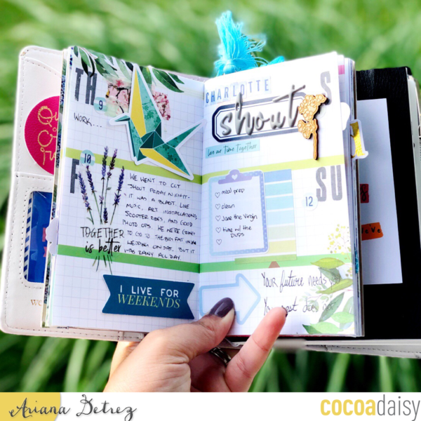 It is so easy to get overwhelmed with all our crafty goodies. So go back to the basics. Use your favorite Cocoa Daisy pen and planner insert for a week or so until you get back into the rhythm of planning. Then you can start adding in the other elements- stickers, die cuts, paperclips, etc! In the photo you can see I just started with some stamping and number stickers. I’ll add through the week or just jot down lists, memories, etc.