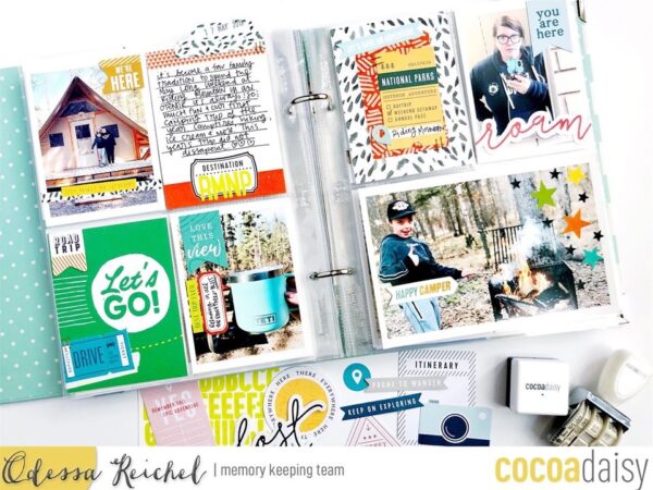 When she opened up the Memory Keeping Classified Kit, Odessa knew it was perfect for some photos she had just gotten printed from a recent camping trip!