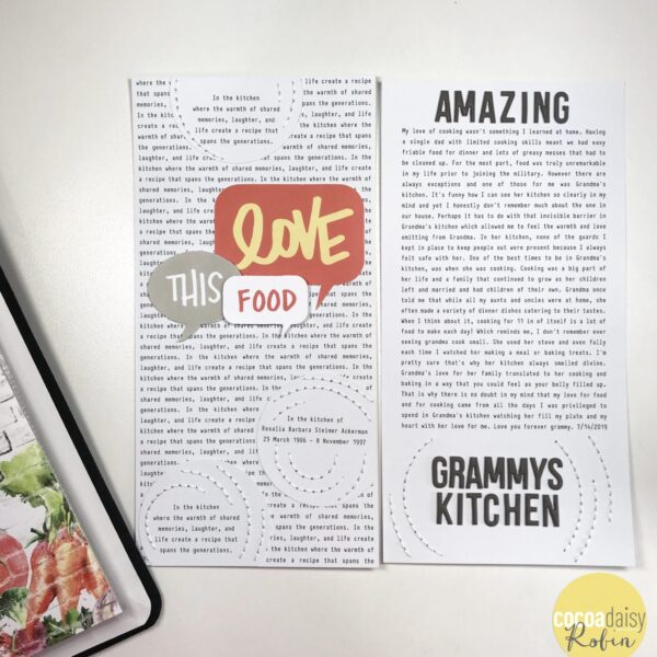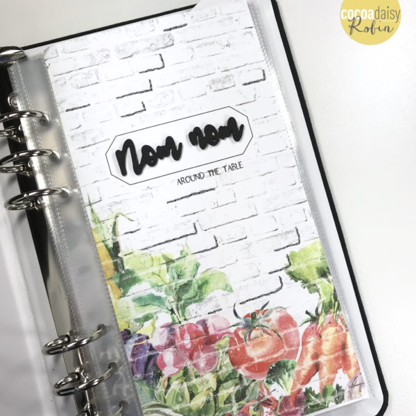 This project has been on my bucket list for a very long time. It got deprioritized for lots of reasons including no vision around how I would approach the album. After seeing peeks of the Farmer’s Market kits, I finally figured out that I wanted my recipes and several important “photoless” memories in this album. In fact, I am going to embrace having many layouts without photos and concentrate on creating an album that overflows with recipes. And a TN album is the perfect size for my carry-on bag or car to take on trips so that I can recreate my favorite recipes when I am visiting family and friends.