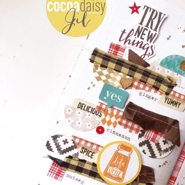 “The stamp that says ‘live life with a little spice’ was perfect for my page. Stamped it in a gingerbread color. So much fun to celebrate these flavors!”