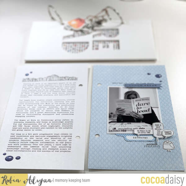 I created the first entry in my Reading Adventures album, choosing to focus on the blues in the kits.