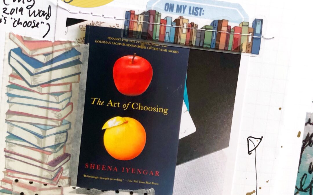 My One Little Word for 2019 is Choose, and so I’m reading a book called The Art of Choosing. There’s so much I want to read right now, and so for “on my list” I just used the great sticker of books lined up on a shelf. Besides capturing my long list, it carries on the visual motif of book imagery on the spread.