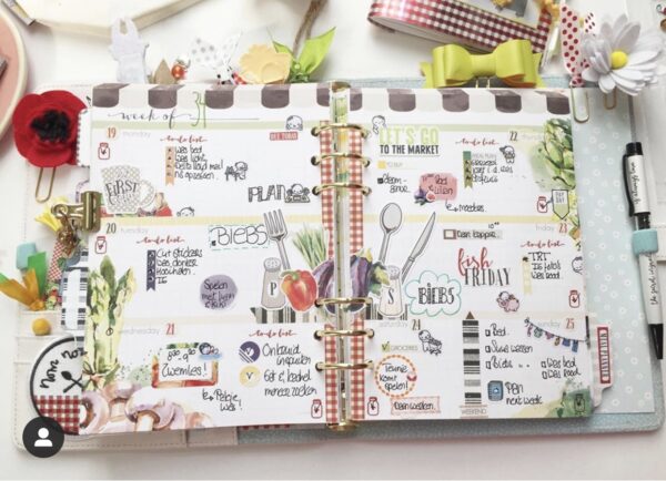 The August Farmer’s Market planner kit brought lots of bright reds and teals to life and I absolutely adored what Linea did with her planner kits!