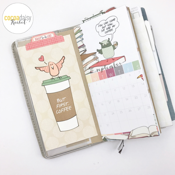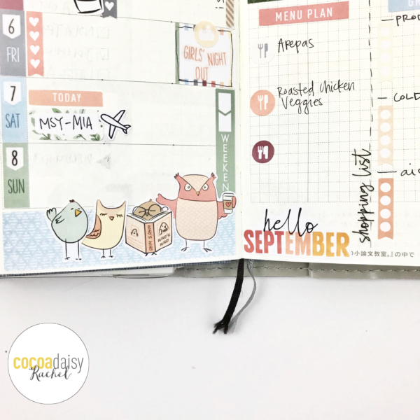 On to the main event! Here is my September monthly spread using decorations from the Planner Kit, Sticker Kit and Planner Add-On Kit.The Owl in the Coffee Cup just make me laugh! His facial expression is exactly how I feel in the morning (before coffee, of course!)