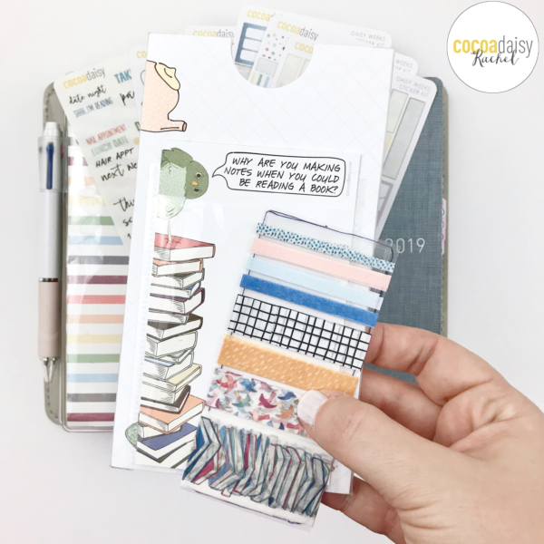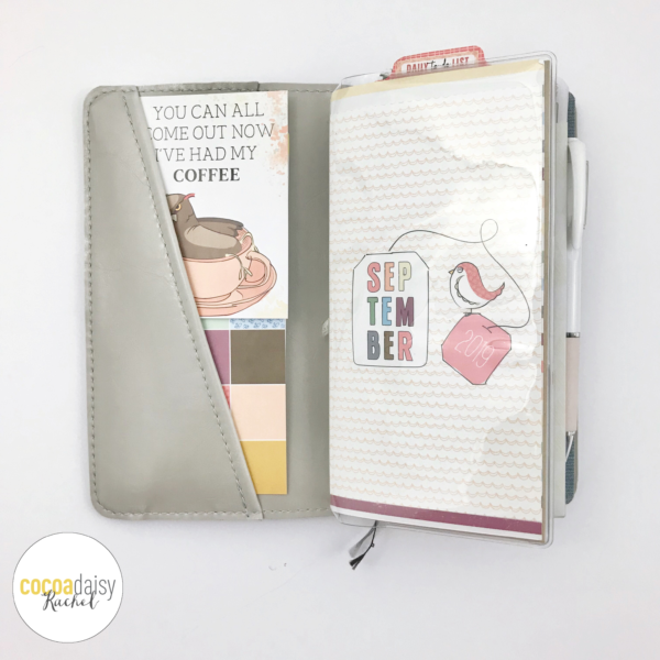 To increase the storage possibilities, I added a photo flip clear pocket and stuck a few sheets of the notepad and a washi card inside. The whole thing tucks perfectly between my two inserts.