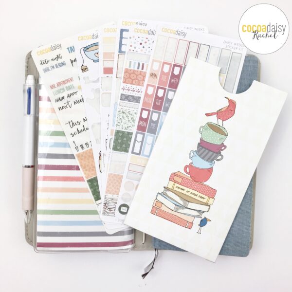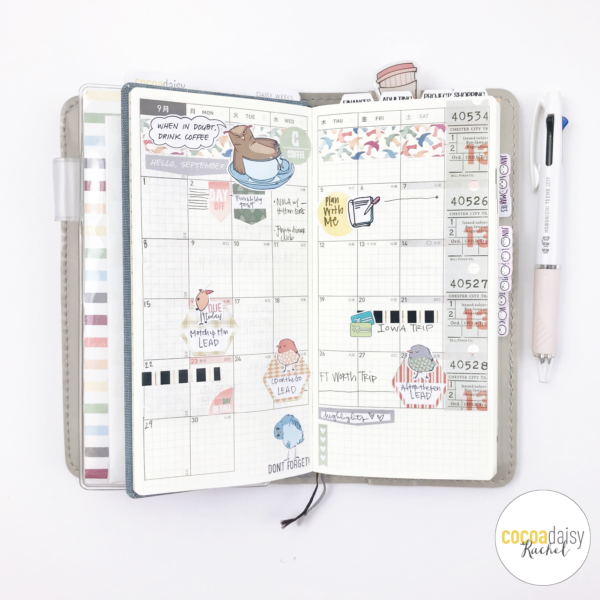Hey Planner Friends! It’s Rachel here, and I am on the blog today sharing my September Setup and Plan with Me in my Hobonichi Weeks Planner that I use as my “On the Go” planner and a wallet. To say that I was excited about this month’s kits is an understatement! The colors, the theme, the snark! And the cherry on top? A new amazing sticker kit! To celebrate the release of the Daisy Weeks Sticker Kit, I decided to set up a Hobonichi Weeks Planner. But there was one catch. When I began setting up this planner (literally, the day I received my kit goodies, haha!) I did not have a hobonichi weeks planner in my possession. So I thought, not a problem, I will make one!