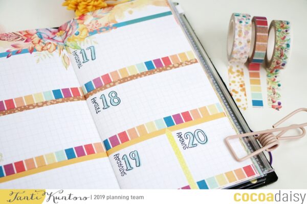 I used them not only to embellish my journal spreads, but also to mark the school holidays in my planner section.