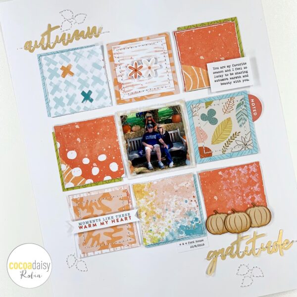 Embellishments are from the planner and memory keeping kits. The cute little pumpkins are wood veneer “stickers” from my stash.