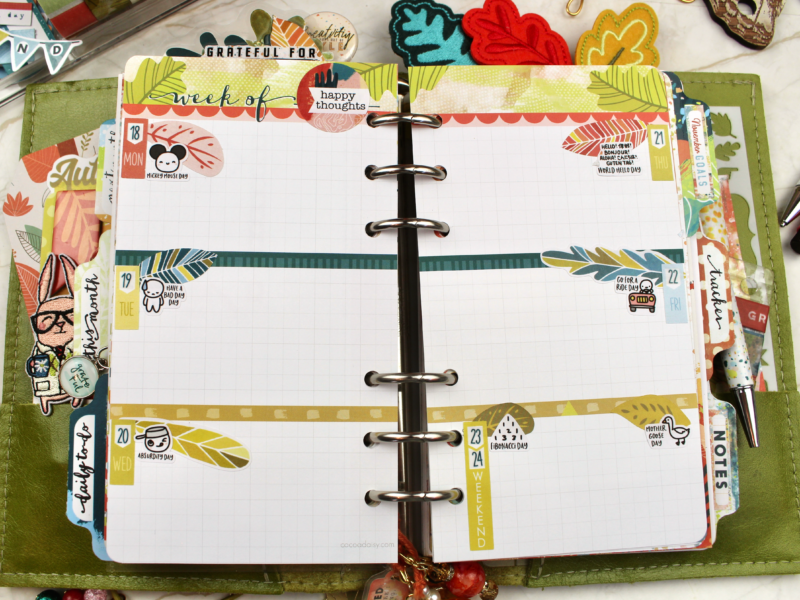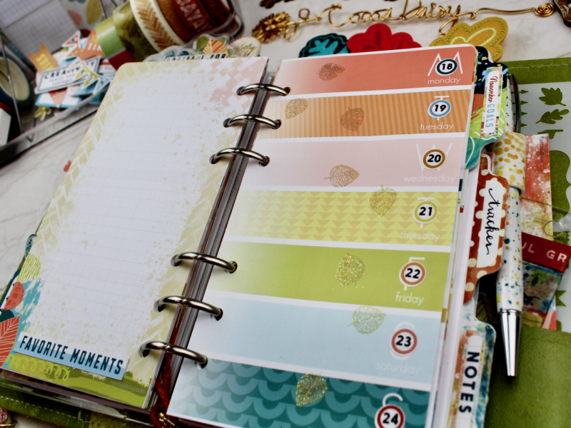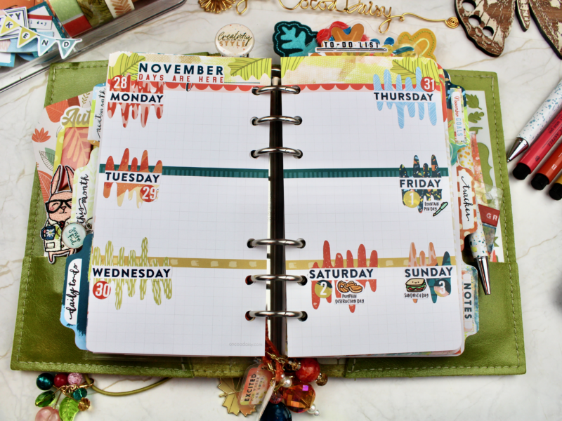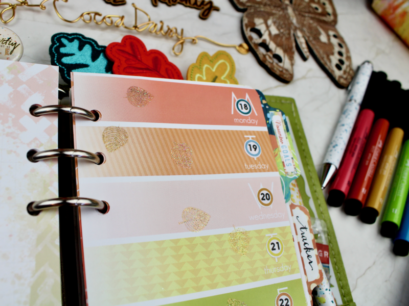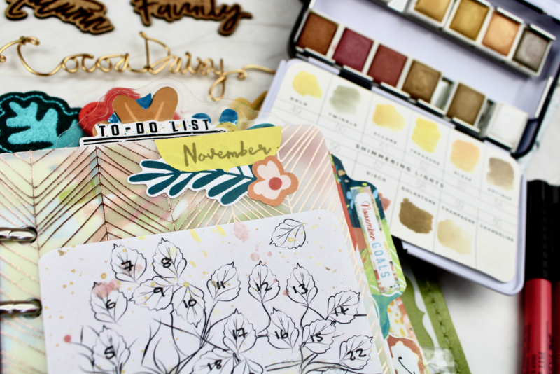 It’s Rachel here, and I’m excited to share my November planner set up with you. I’ve LOVED using Autumn Whimsy for October, and was almost, almost regretting having to move on – but you guys, the colours and the textures and the possibilities that are within the November collections are almost TOO much fun to play with, and I’ve thoroughly loved trying things out.
