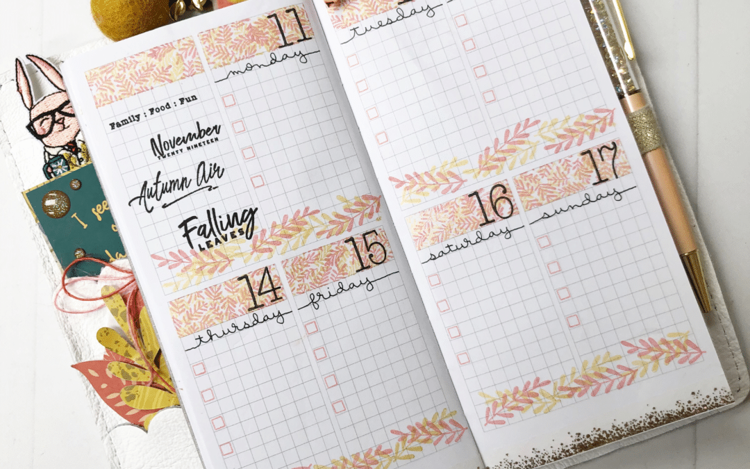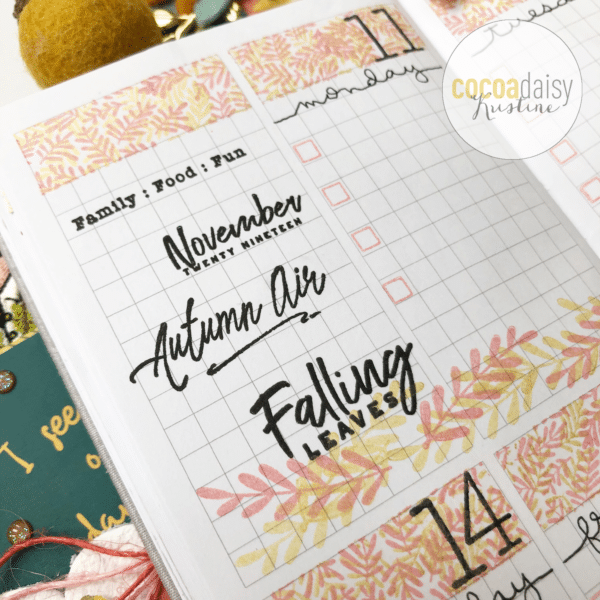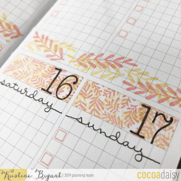 Hey, Daisies! It’s Kristine again, and today I have a plan with me video for you using the leaf stamps in the Memphis Season kits. I’ve been stickering up (yep, that’s totally a word!) my planner a lot lately and thought it would be fun to do another stamping layout. Stamping is fun, it’s easy, and it doesn’t add any much bulk to my planner like stickers do, haha, so I like to mix it up from time to time. And this week was one of those times!