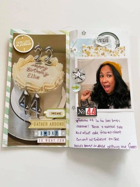 I challenged myself to document things I have been thankful so far this month, starting with my 44th birthday. The die cuts always have pieces you can use for any theme. I was so pleased with the flexibility of Nordic Woods, which at first glance, seemed to be a winter-themed kit.