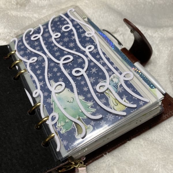 I did something different, and left these “snowy gust” stickers on the clear acetate and used it as a dashboard. I thought it looked like snow falling!