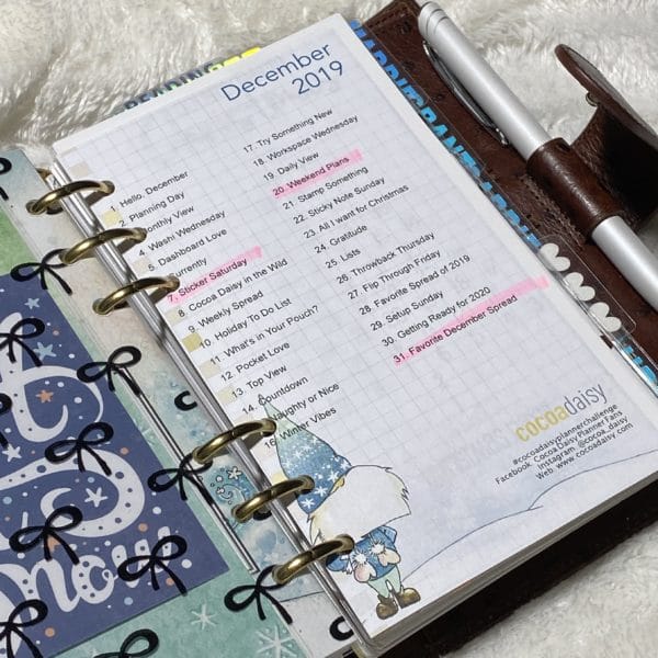 Every month I print out the Cocoa Daisy monthly challenge printable and keep it in my planner for easy referencing!