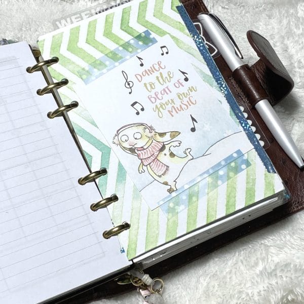 I absolute love this acetate, and I didn’t want to trim off any of the picture to put in my planner. So I cut it in half and turned it sideways! I layered it over some Cocoa Daisy patterned paper so the design would pop, and I love it. I feel like it’s a little surprise right in the middle of my planner! And then I layered a couple more pocket cards on the back sides of the paper.