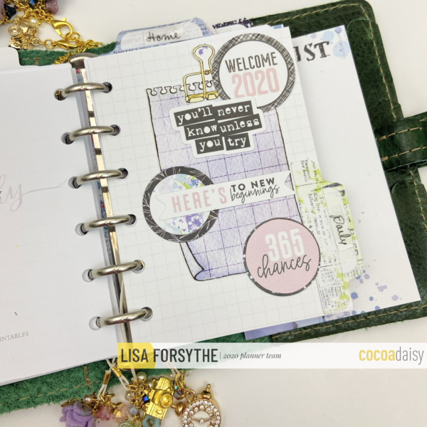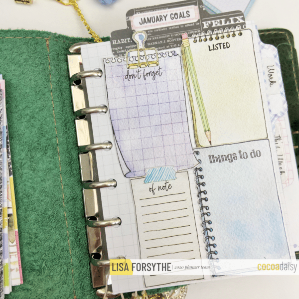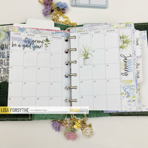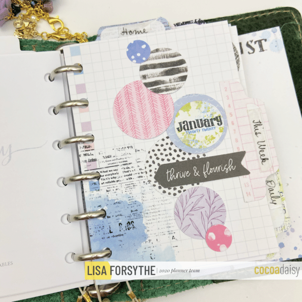 Hello Daisies! I wanted to give you a peek inside my January planner that I am in the process of setting up. I decided I wanted to try and use a pocket rings notebook to see how I liked it (who am I???) If you have been following me for awhile you know A6 is my size…whether it is in rings or a TN so to go to a pocket size is very different for me. I am using the new Vintage Thicket from The FoxyFix in Pocket rings with a snap closure.