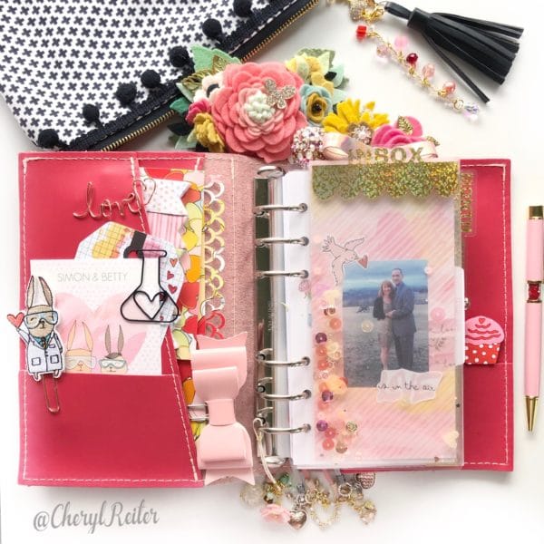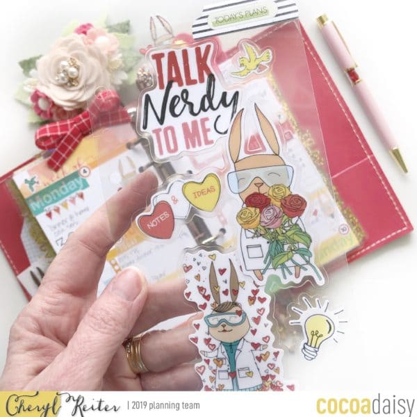 February may have brought in colder weather in the Mid-Atlantic but Cocoa Daisy brought us these gorgeous peachy pinks with all the warm and fuzzies courtesy of Simon and Betty. If you bought the Valentines add-on and the Planner Classified kit, you received lots of hearts along with Simon and Betty. I love the Simon clip!