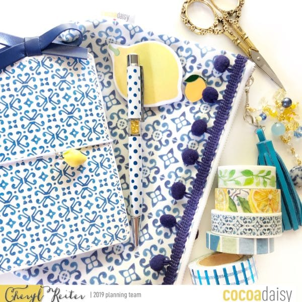 At the beginning of May, I was not ready for blue and yellow but by the time June arrived, I LOVED the bright blue and yellow! The lemon theme was refreshing and exactly what I needed to start the summer. The blue tile notebook and pouch Christine included is classic and gorgeous!
